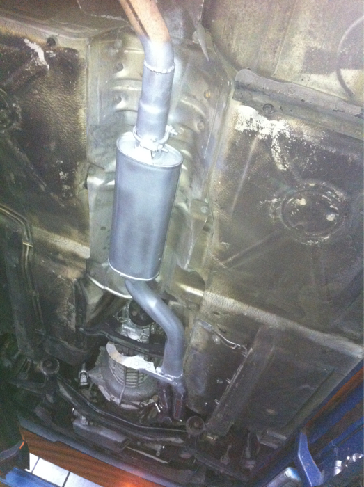 O resultado final ainda não é este, falta ainda colocar a panela final da linha de escape de maneira a que fique a respirar devidamente (a panela que está montada actualmente é de um 316i... vá-se lá saber porque diabo o dono original achou por bem meter lá "aquilo").