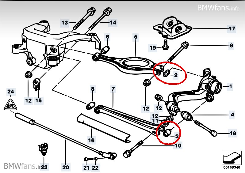A origem de todos os ruídos na traseira era destas duas peças, um bater metálico que era a folga no casquilho (número 3 na imagem) era potenciado pelo movimento permitido pela rótula flutuante (peça número 2), o que, em alterações de carga esquerda-direita dava uma aproximação muito fiável de uma desintegração do eixo traseiro.